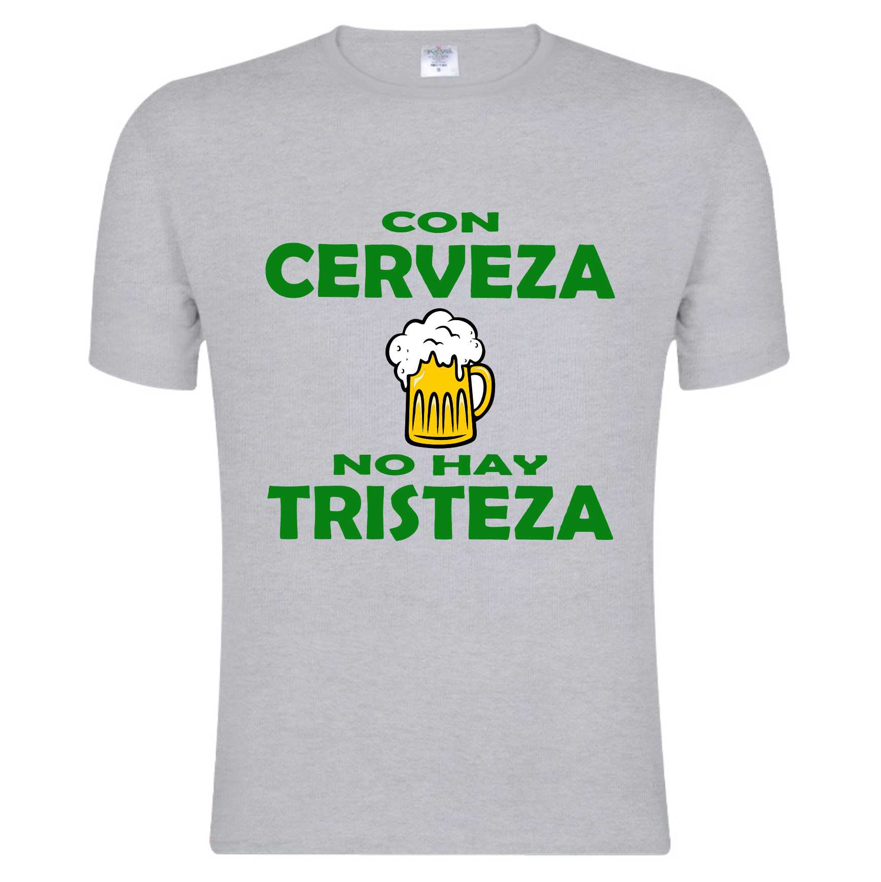 Camiseta gris “Con cerveza no hay tristeza” – El regalo perfecto para amantes de la birra