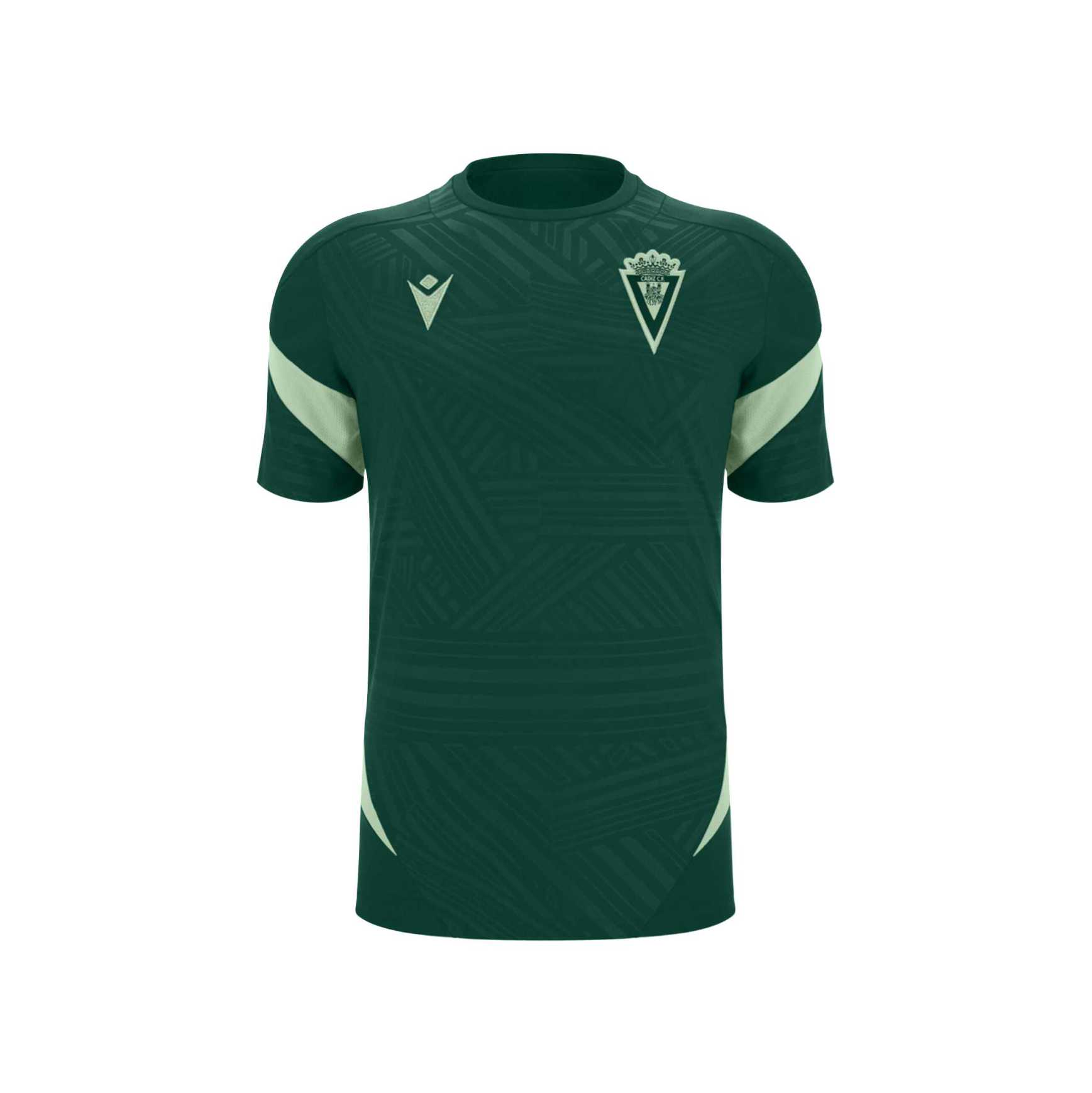 Con un diseño en tonos verde oscuro con detalles en verde claro, esta camiseta técnica destaca por su estética sobria y profesional. El escudo del Cádiz CF bordado en el pecho aporta autenticidad y representa el compromiso con el club. El tejido técnico y transpirable permite una total libertad de movimiento y una ventilación óptima durante las sesiones más exigentes.