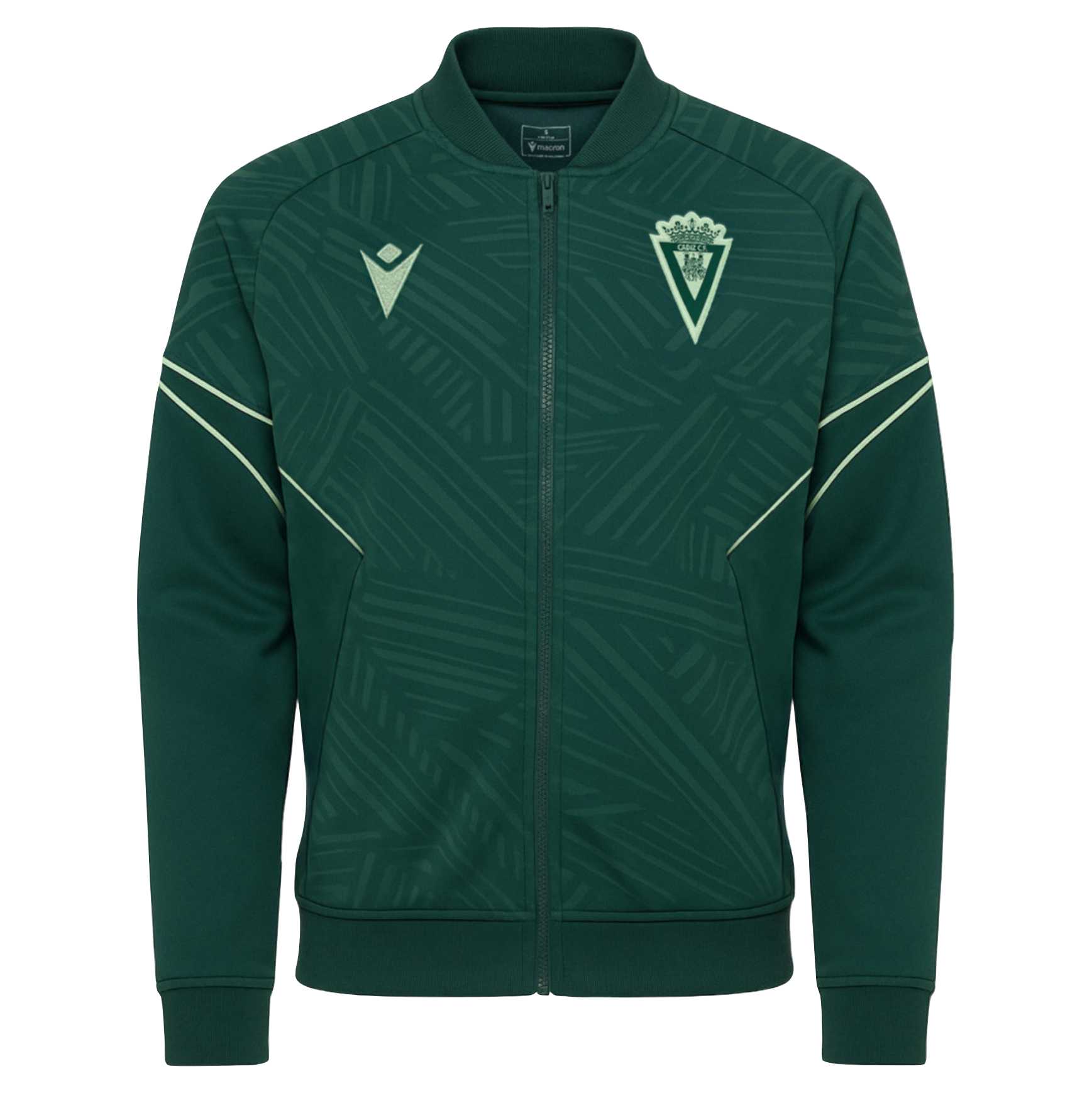 El diseño incluye cremallera frontal completa, puños elásticos y cintura ajustada que ayudan a mantener la prenda en su sitio. Además, el escudo del Cádiz CF y el logotipo del fabricante aportan un acabado auténtico que refleja la identidad del club.